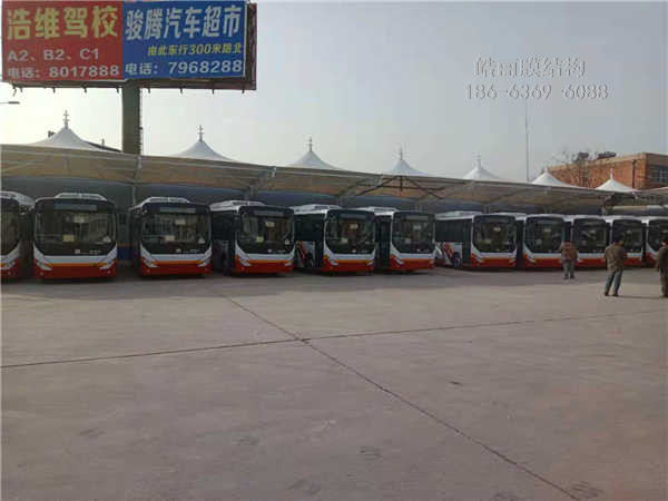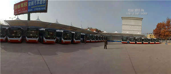 膜结构充电桩,建设单位,保定市荣清国控集团有限公司,地点,交通运输管理站,本工程采用钢材规121✘3.5行架立柱,114✘4 89✘3.5行架梁,膜布PVDF1100克刀挂工艺,膜布拉力5200牛,膜布特点,拉力强,耐候性自洁性高,持久耐用.